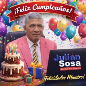 Todo el equipo de Horizonte Noticioso extiende un cordial y afectuoso mensaje de felicitaciones en el día de su cumpleaños al señor Julián Sosa, destacado educador y profesional comprometido con la formación de las nuevas generaciones.