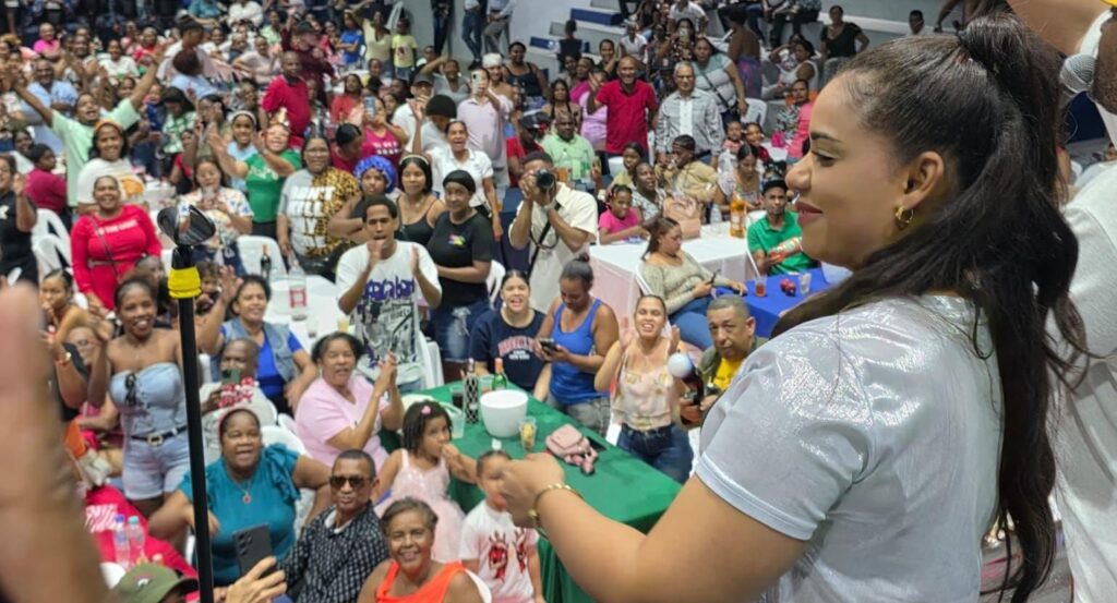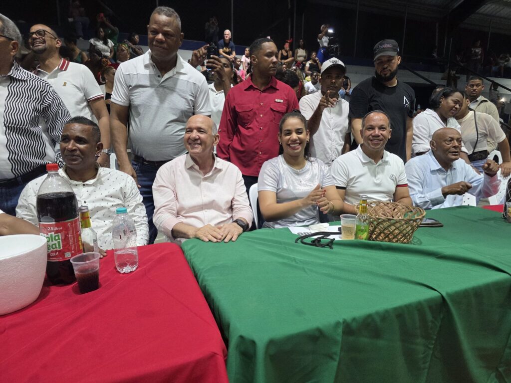 La alcaldesa Betty Gerónimo encabezó el encuentro, donde familias completas disfrutaron de una cena típica de Navidad, rifas, sorpresas y un animado concierto del merenguero Kinito Méndez, quien puso a cantar y bailar a los presentes con sus más reconocidos éxitos.