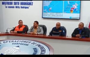 Durante la rueda de prensa, el subdirector y jefe de la División de Operaciones del COE, Erwind Olivares Luciano, explicó que los equipos de socorro y los organismos de primera respuesta se mantienen desplegados en todo el territorio nacional, dando seguimiento a las zonas en alerta roja, amarilla y verde, en coordinación con las gobernaciones provinciales, alcaldías y cuerpos de emergencia.