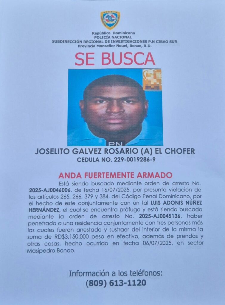 Recientemente se entregó a las autoridades Joselito Gálvez Rosario alias “El Chofer”, a quien se le conocerá medida de coerción en las próximas horas.