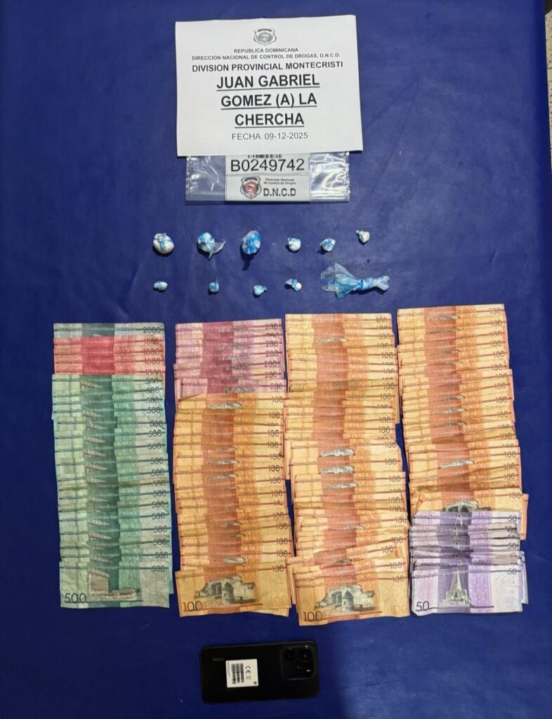 Los agentes y fiscales, mediante labores de seguimiento e inteligencia, localizaron a alias “La Chercha” en la calle Mella esquina Rodrigo de Triana, sector Albimar, municipio San Fernando, a quien se le ocupó 31.7 gramos presumiblemente cocaína, 23, 500 pesos dominicanos, una motocicleta y un celular.