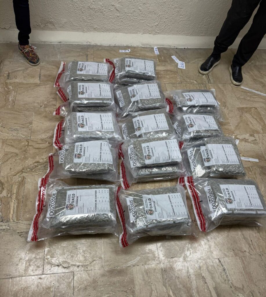 Por instrucciones del fiscal, se abrió el bulto, ocupando dentro un total de 42 paquetes de presunta marihuana, envueltos en fundas plásticas y empacados al vacío, con un peso preliminar de 62 libras.
