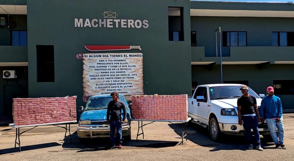 _Fueron detenidos en dos vehículos, uno con la mercancía ilegal y otro que flanqueaba al primero._