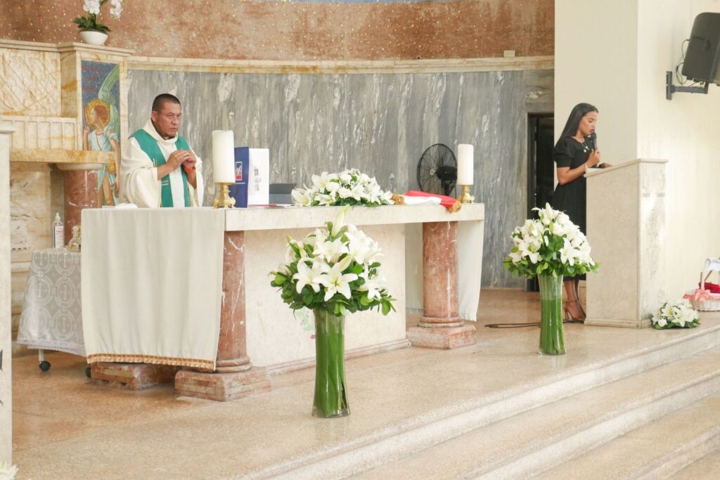 La ceremonia religiosa estuvo presidida por el *Padre Javier Basilio*, de la Parroquia Nuestra Señora de la Paz, quien exhortó al personal del INPOSDOM a continuar desempeñando sus funciones con entrega y sentido humano, reafirmando así el compromiso institucional de ofrecer un servicio público de calidad y con auténtica vocación de servicio.