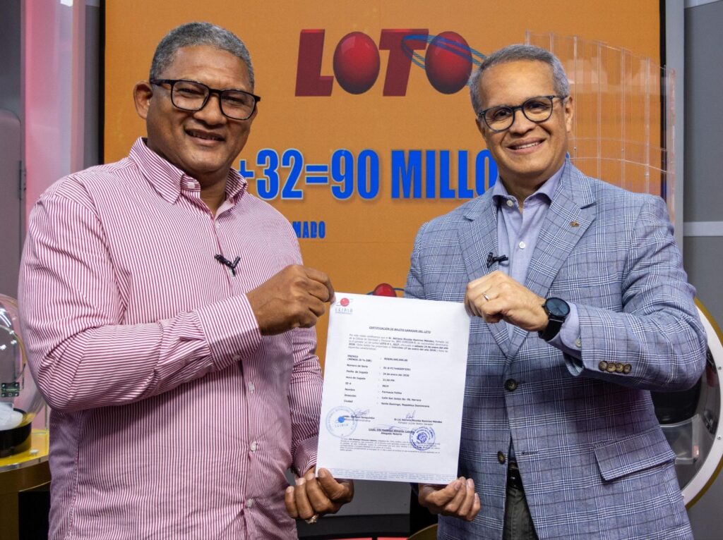 La Lotería Electrónica Internacional Dominicana, S.A (LEIDSA) informó, que el Sr. Adriano Nicolas Ramírez Méndez, recibió el certificado que lo acredita como el ganador de los 90 millones de pesos que tenía el sorteo Loto del pasado miércoles 24 de enero.