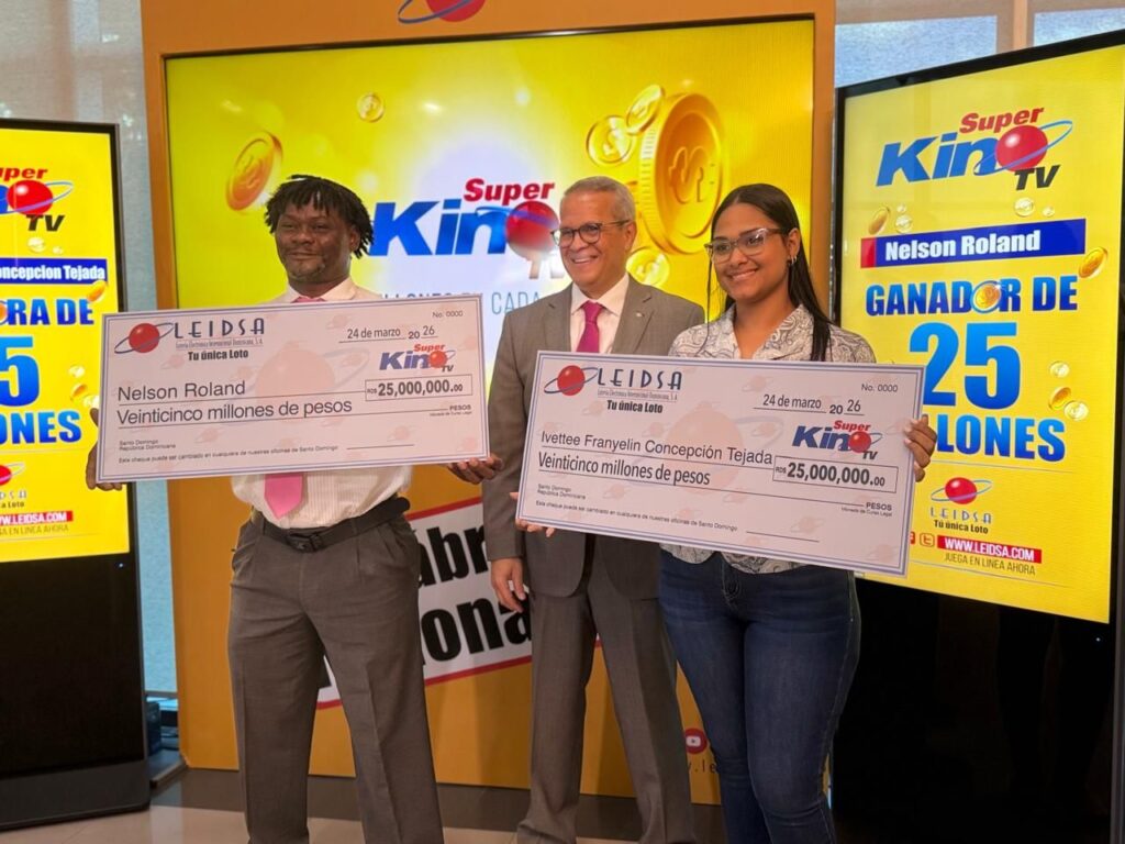 Santo Domingo, R.D. – La Lotería Electrónica Internacional Dominicana, S.A. (LEIDSA) informó la entrega de RD$50 millones a dos nuevos ganadores del sorteo Súper Kino TV, quienes recibieron RD$25 millones cada uno.