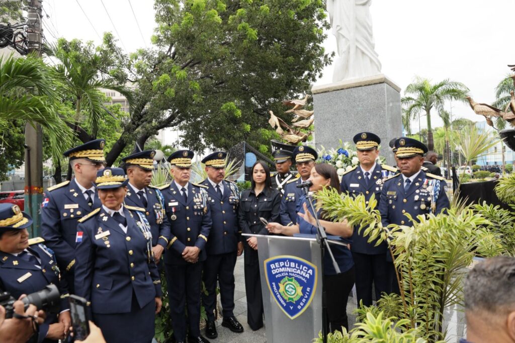 Posteriormente se realizó un acto solemne frente a la estatua de San Judas Tadeo en homenaje a los agentes caídos en cumplimiento del deber: primer teniente Fernelis Valdez (DINTEL), sargento mayor Eddy Calcaño Castillo (DICRIM), cabo Arias de Jesús (Operaciones Especiales) y raso Anyelo Medina Peña (Departamento de Barahona).