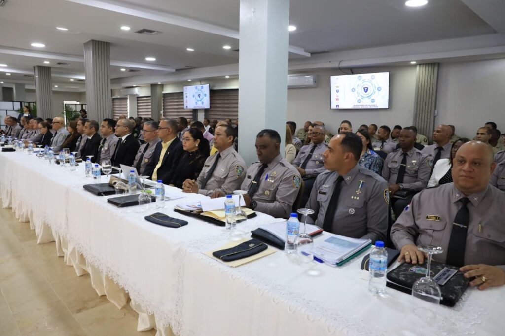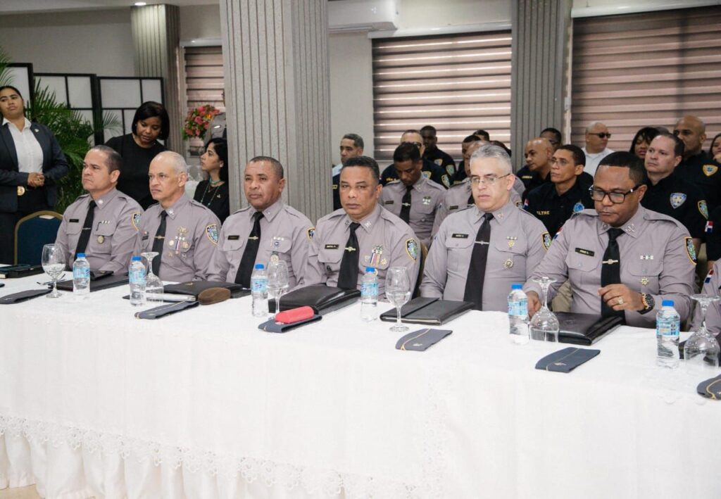 La sesión de trabajo se realiza en el Salón del Club de Oficiales del Palacio de la Policía Nacional. En ella se evalúan las tareas cumplidas hasta la fecha, los resultados alcanzados y las nuevas disposiciones que serán adoptadas para continuar elevando los niveles de seguridad en beneficio de los dominicanos.