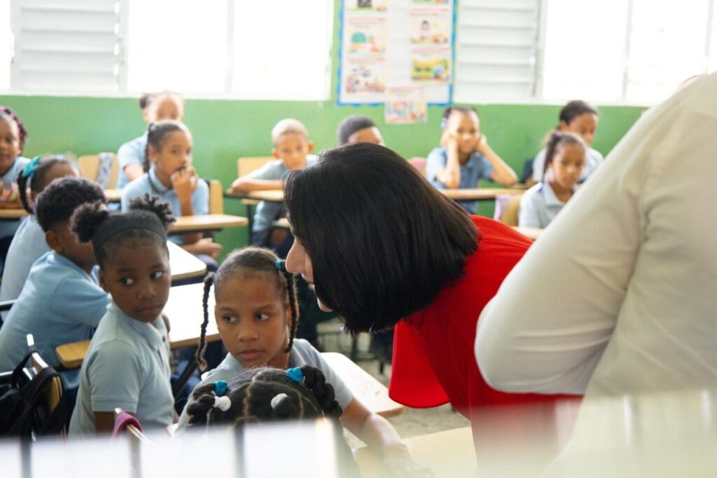 Santo Domingo.- La primera dama Raquel Arbaje impartió este jueves una clase de Moral, Cívica y Ética Ciudadana a estudiantes de cuarto de primaria de la Escuela Padre Eulalio Arias, ubicada en el sector Cristo Rey, como parte del fortalecimiento de la formación en valores impulsado por el Ministerio de Educación.