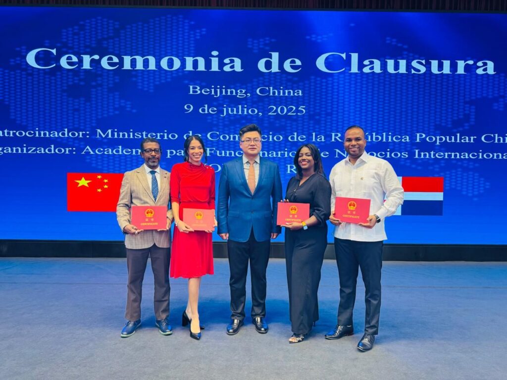 Rafael Lorenzo; encargado del Departamento de Proyectos; Bienvenido Jiménez, encargado de Planificación y Desarrollo, Loida Polanco; asistente de Proyectos, y Yamil Drullard ; gerente de Incidencia y Comunicaciones, representaron a Fedomu durante el desarrollo del programa, celebrado en la prestigiosa Academia de Funcionarios de Negocios Internacionales (AIBO), que depende directamente del Ministerio de Comercio de la República Popular China.