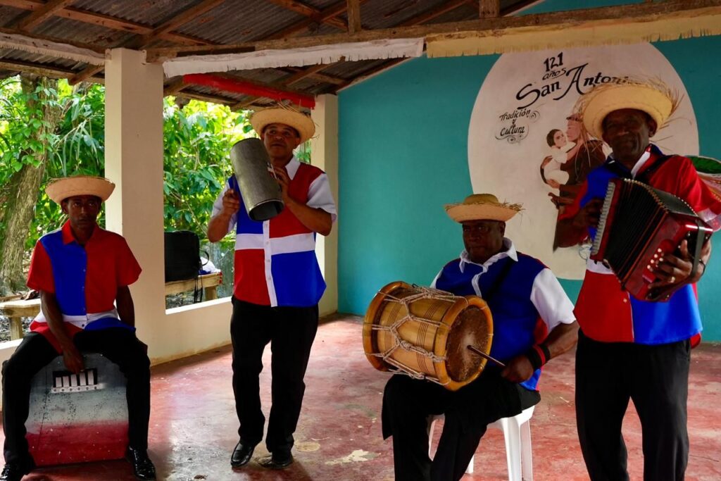 El recorrido incluyó una estación sobre el casabe, uno de los principales aportes culinarios de los pueblos aborígenes a la gastronomía occidental. Otra parada estuvo dedicada al merengue, y la última mostró la tradición de Los Congos de Villa Mella, cofradía fundada en el siglo XVI por africanos esclavizados.