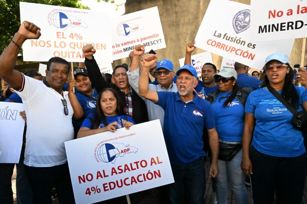 Ante cientos de maestros y maestras que se congregaron en el parque Independencia, Hidalgo dijo que la fusión de ambas instituciones educativas solo empeorará aún más las condiciones de las escuelas públicas y el sistema educativo dominicano.